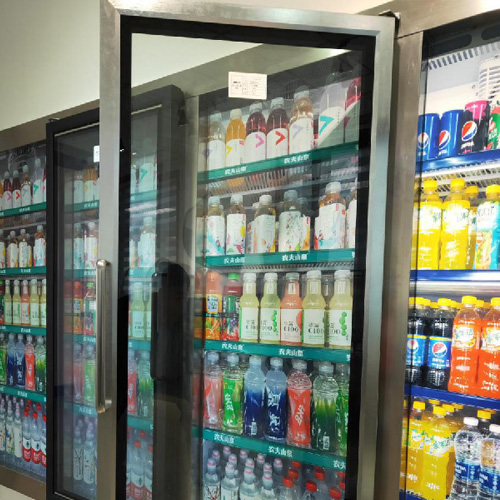其实,便利店冰柜这样的设计的有缘由的,它们的主要用途是在超市、便利店冷藏饮料和酸奶。采用玻璃门能更好地 展示货物,也能让顾客不必打开冰柜门就能够挑选商品,避免放出更多冷气影响制冷效果。它的华丽设计,使得大家 都很喜爱这产品,但是它也有缺点,特别是梅雨季节玻璃门上会有雾水。